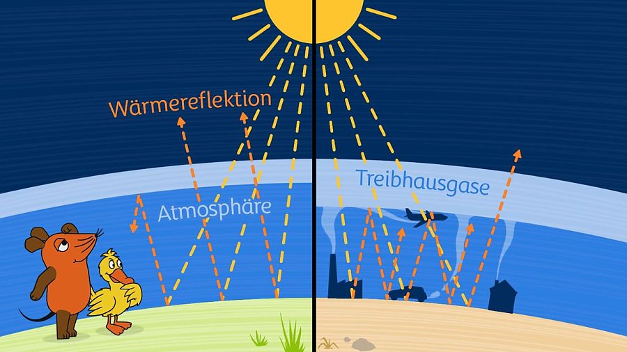 Der Anstieg der CO2-Konzentration wird immer weiter beschleunigt und somit steigt durch den Treibhauseffekt auch die durchschnittliche Temperatur immer schneller an. Dabei erhitzt sich die Erde nicht gleichmäßig, beispielsweise beobachten Wissenschaftler:innen, dass die Temperaturen an Nord- und Südpol viel schneller ansteigen als im Rest der Welt. Grundsätzlich erhitzt sich die Atmosphäre über Land stärker als über den Ozeanen, weil diese wie große Wärmespeicher träge reagieren.