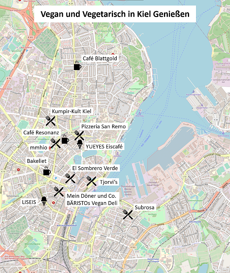 Eine Auswahl vegetarischer und veganer Restaurants, Cafés und Imbissen in Kiel.